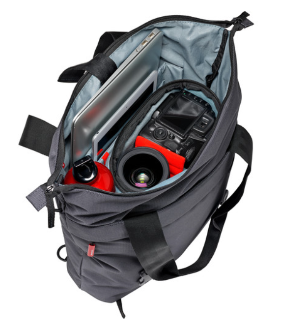 Die Manfrotto Manhattan (MB MN-T-CH-20) ist eine vielseitige, urbane graue 3-Wege-Kameratasche, die sich im Handumdrehen von einem Rucksack in eine Umhängetasche oder Tragetasche verwandeln lässt und eine hochwertige spiegellose Kamera oder eine Einsteiger-DSLR mit einem 70-200 mm f/2,8-Objektiv sowie zwei weiteren Objektiven, einem 15-Zoll-Laptop, ein 9,7-Zoll-Tablet, persönliche Gegenstände und sogar ein kleines Stativ – alles aus wasserabweisendem Ballistic-Nylon mit mitgeliefertem Regenschutz.