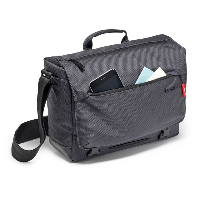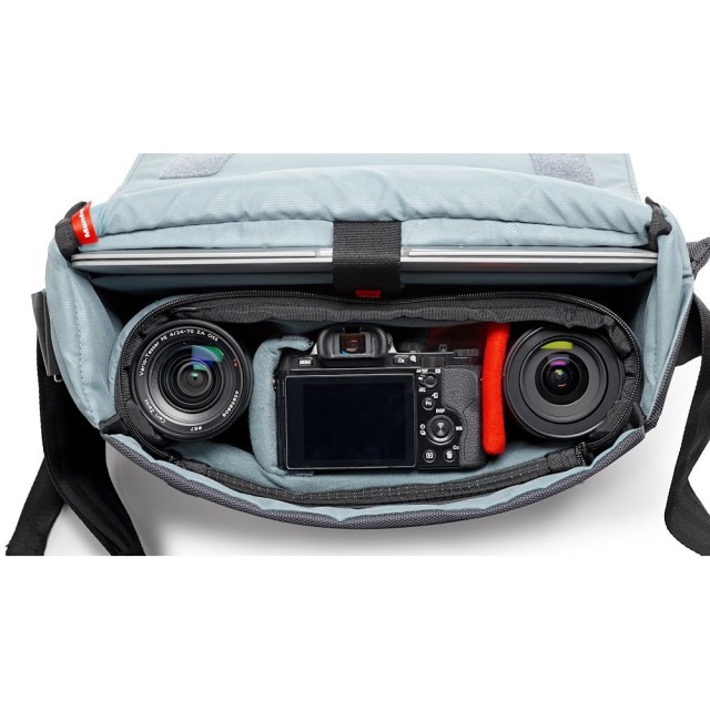 Die Manfrotto MB MN-M-SD-10 Manhattan Speedy-10 Messenger ist eine 880 g schwere graue Urban-Tasche aus ballistischem Nylon mit herausnehmbarem Flexy Camera Shell-Einsatz (26 × 10 × 19 cm), einer 12-Zoll-Laptophülle, einer versteckten Stativklappe, einem Stabilisierungsgurt und einer wasserabweisenden Beschichtung – passend für hochwertige CSC-Kits…