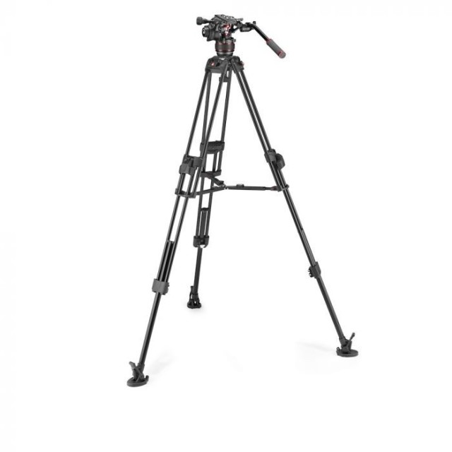 Das Videosystem umfasst einen Manfrotto NITROTECH 608 Fluid -Videokopf und 645 Fast Twin-Stativbeine aus Aluminium.