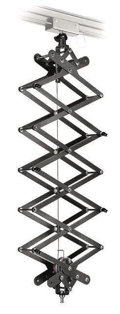 Dies ist ein Manfrotto FF3512N86 Pantograph mit Stahlseil. Der Pantograph ist aus Aluminium gemäß DIN 15560-46 gefertigt. Die Befestigungen an beiden Enden des Pantographen sind 5/8" (16 mm) (oben weiblich, unten männlich). Die Tragfähigkeit wird durch ein Stahlseil mit einem Durchmesser von 2 mm gewährleistet. Der Pantograph lässt sich von einer geschlossenen Länge von 27 cm auf eine maximale Länge von 200 cm ausziehen.