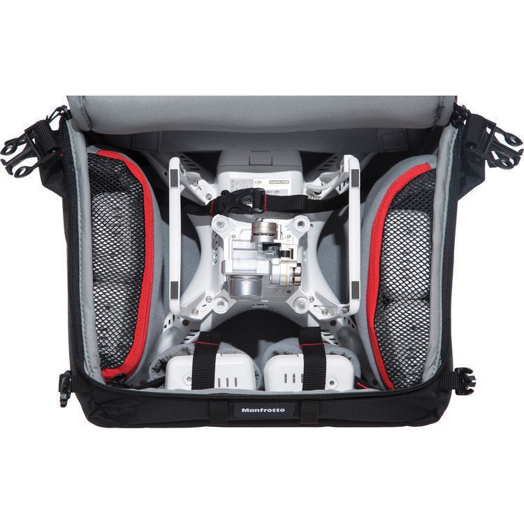 Der in Zusammenarbeit mit DJI entwickelte Manfrotto PL-3N1-35 DJI Edition Foto-Rucksack bietet eine zuverlässige und übersichtliche Transportmöglichkeit für Drohnen der Phantom-Serie und wichtiges Zubehör. Basierend auf dem bewährten Design der Manfrotto-Videorucksäcke unterstützt er die Modelle DJI Phantom 1 bis Phantom 4 Pro+ und bietet sicheren Stauraum für das Fluggerät, die Fernsteuerung mit Reichweitenverstärker, bis zu fünf Flugakkus, Ladegerät, Ersatzpropeller und Zubehör.