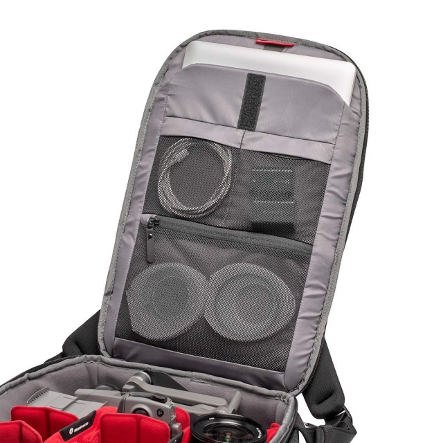Der Pro Light Backloader bietet einen sicheren Zugang auf der Rückseite zu einem vollständig gepolsterten Kamerafach mit anpassbarer Innenausstattung. Für sorgenfreies Fotografieren bietet der Rucksack ein Innenfach für 2-3 spiegellose Kameras mit mehreren Objektiven. Es ist auch möglich, das Innenfach für die Technik und separat für persönliche Gegenstände zu unterteilen. Die Trennwände sind je nach Bedarf verstellbar. Der Zugang von oben dient als Alternative, um die am häufigsten verwendete Kamera oder das Objektiv zu erreichen. An der Vorderseite befindet sich ein mehrteiliges Fach für Kleinzubehör und persönliche Gegenstände sowie Platz für einen Laptop bis zu 15 Zoll.