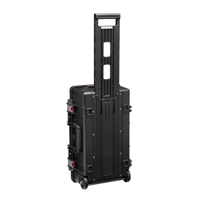 In der schwarzen Pro Light Reloader Tough-55 Low Lid Carry-On Camera Wheeled Bag von Manfrotto können Sie zwei digitale Spiegelreflexkameras, das angesetzte 70-200mm-Objektiv Ihrer Wahl, drei bis vier weitere Objektive und weiteres Zubehör verstauen, transportieren und schützen.