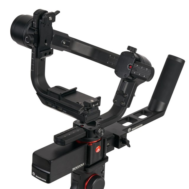 Der Manfrotto MVG300XM Professional 3-Axis Modular Gimbal ist ein hochwertiger, modularer Handstabilisator, der für professionelle Videografen entwickelt wurde, die CSC- und DSLR-Kameras mit einem Gewicht von bis zu 3,4 kg (7,5 lbs) verwenden. Sein modulares Design verfügt über einen abnehmbaren Griff, der gleichzeitig als Fernbedienung dient und eine flexible Bedienung über mehrere Stützen und Aufnahmestile hinweg ermöglicht. Der Gimbal-Griff verfügt über einen integrierten LCD-Touchscreen, einen Joystick und einen Multifunktionsknopf, über die Einstellungen, Gimbal-Bewegungen und die Fokussierung einfach gesteuert werden können.