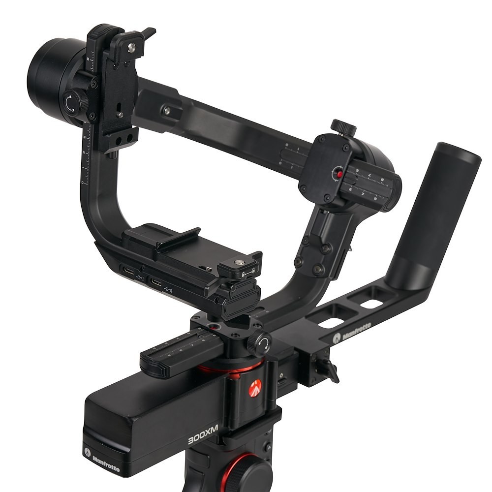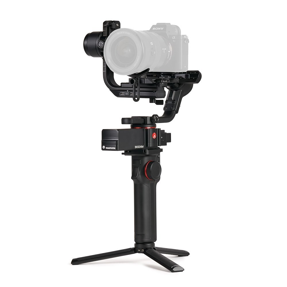 Das Ausbalancieren wird durch rote Markierungspunkte an den vertikalen und Querarmen vereinfacht, und unabhängige Achsenverriegelungen verhindern Verwacklungen während des Transports. Der MVG300XM unterstützt eine Vielzahl von Aufnahmemodi, darunter Zeitraffer, Inception, Panorama, Porträt und Selfie. Ein abnehmbarer hinterer Griff sorgt für stabilen Halt in verschiedenen Winkeln, und ein Mini-Stativ ermöglicht eine schnelle Einrichtung und Ausbalancierung. Die spezielle Manfrotto Gimbal 300XM App ermöglicht die Fernsteuerung und erweiterte Funktionen über Wi-Fi.