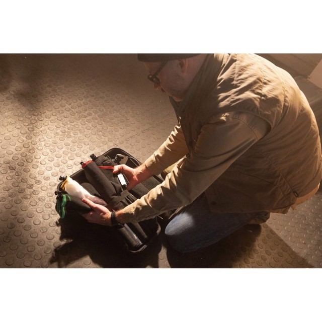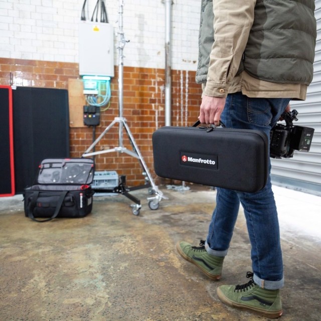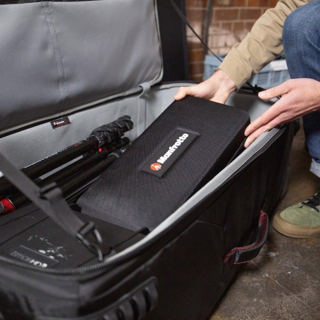 Die Innenfächer des stabilen Koffers sorgen dafür, dass alles sicher an seinem Platz bleibt und für die nächste Aufnahme bereit ist, was die Aufbauzeit verkürzt und den Arbeitsablauf verbessert