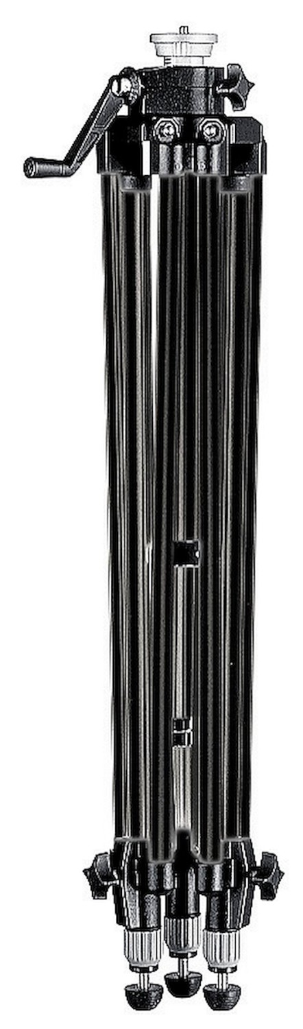 Manfrotto Triman ist ein 4,1 kg schweres Studio-Kraftpaket aus schwarzem Aluminium, das sich über eine Zahnstangensäule auf 227 cm ausfahren lässt, mit einer Drehung zwei Schenkelbeine arretiert und mit einziehbaren Spikes auf jedem Boden Halt findet. Wasserwaage + Mittelspreizer = jedes Mal absolut gerade Mittelformataufnahmen.