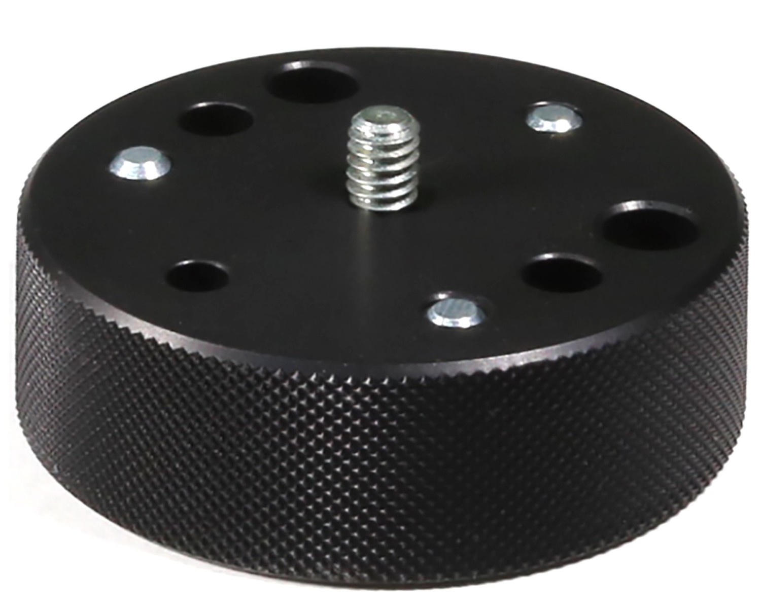 Der Manfrotto 120 ist eine robuste 60-mm-Aluminium-Konverterplatte, die sich auf jedes Stativ oder jeden Ständer mit einem 3/8″-16-Außengewinde schrauben lässt und sofort einen stabilen 1/4″-20-Außengewindestift bereitstellt. So können Sie leichte Köpfe, die nur über eine 1/4″-20-Buchse verfügen, sicher auf professionellen 3/8″-Ständern und -Stativen verwenden, ohne dass es zu Wackeln oder Beschädigungen kommt.