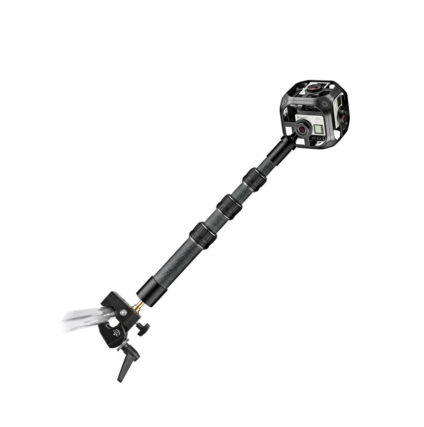 Die Manfrotto M035VR Virtual Reality Super Clamp ist eine 410 g schwere Aluminium-Klemmzange (13–55 mm Spannweite) mit einer Tragkraft von 15 kg, die zum Befestigen von 360°-Kameras an Zylindern, flachen oder unregelmäßigen Objekten entwickelt wurde. Sie bietet eine absolut stabile, vollständige Bewegungssteuerung für VR-/360°-Aufnahmen in einem professionellen, tragbaren Paket.