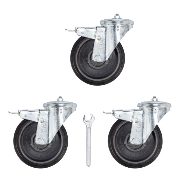 Sada Manfrotto 374-10 Braked Wheel Set obsahuje 3 kolečka s brzdou o průměru 160 mm. Jsou navržena pro použití v extrémních podmínkách. Díky širokému průměru se tato kolečka ponoří do měkkého terénu mnohem méně než jakýkoli jiný model. Připojují se ke stojanu Manfrotto Wind Up Stand pomocí závitu M10. Hmotnost: 7,2 kg.