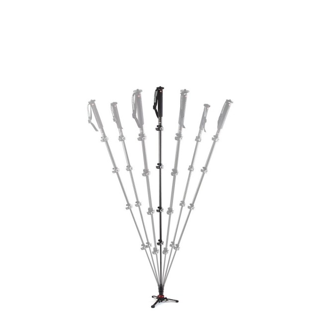 Die Konstruktion des Einbeinstativs umfasst fünf Beinsegmente mit Hebelverschlüssen, die eine schnelle und intuitive Höheneinstellung ermöglichen. Die maximale Höhe des Geräts beträgt 188 Zentimeter, was eine ausreichende Reichweite bietet, um Hindernisse zu überwinden und den idealen Blickwinkel zu erreichen. Zusammengeklappt beträgt die Transportlänge 60,5 Zentimeter, was das Einbeinstativ äußerst tragbar und praktisch für Reisen zwischen einzelnen Drehorten macht.
