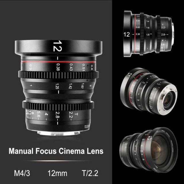 Ein vollständig manuelles Weitwinkelobjektiv mit einer hohen Blendenöffnung von T2,2 und einer Brennweite von 12 mm. Das Objektiv liefert scharfe Bilder mit minimalen Farbfehlern und gleichmäßiger Bildwiedergabe jenseits der Schärfentiefe, unterdrücktem "Atem"-Effekt und langem Fokusringweg (270°) mit M0,8-Verzahnung und Präzisionsmarken (Genauigkeit ca. 10"; Verzahnung auch am Blendenring). Für MFT-Bajonett.