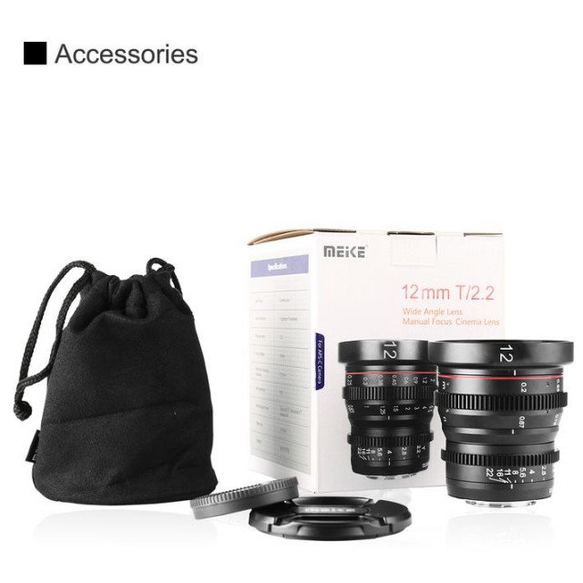 Ein vollständig manuelles Weitwinkelobjektiv mit einer hohen Blendenöffnung von T2,2 und einer Brennweite von 12 mm. Das Objektiv liefert scharfe Bilder mit minimalen Farbfehlern und gleichmäßiger Bildwiedergabe jenseits der Schärfentiefe, unterdrücktem "Atem"-Effekt und langem Fokusringweg (270°) mit M0,8-Verzahnung und Präzisionsmarken (Genauigkeit ca. 10";…