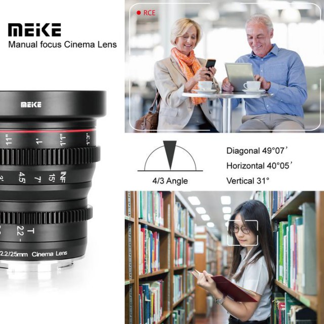 Ein vollständig manuelles Weitwinkelobjektiv mit einer hohen Blendenöffnung von T2,2 und einer Brennweite von 25 mm. Das Objektiv liefert scharfe Bilder mit minimalen Farbfehlern und gleichmäßiger Bildwiedergabe jenseits der Schärfentiefe, unterdrücktem "Atem"-Effekt und langem Fokusringweg (270°) mit M0,8-Verzahnung und Präzisionsmarken (Genauigkeit ca. 10"; Verzahnung auch am Blendenring). Für MFT-Bajonett.