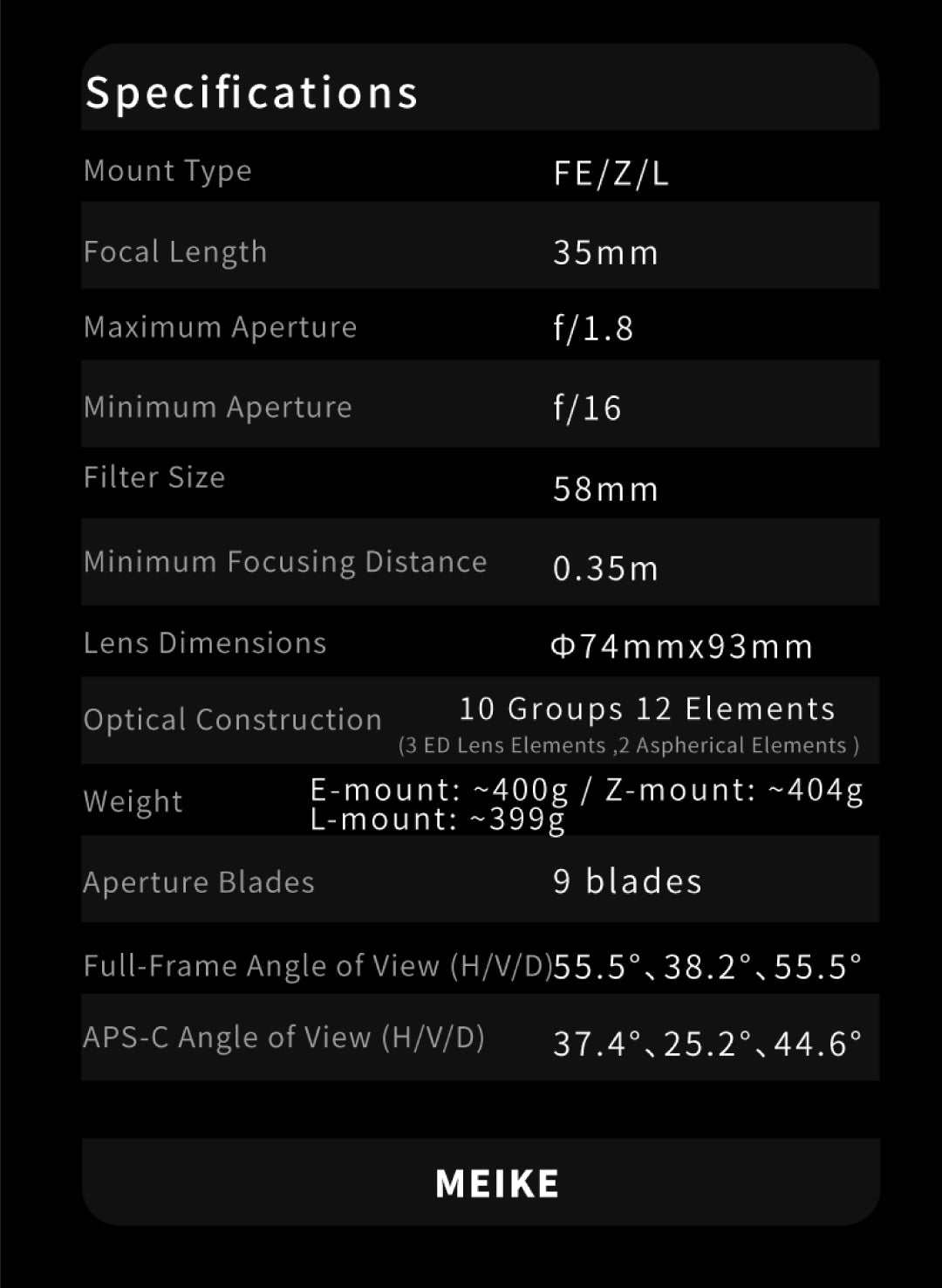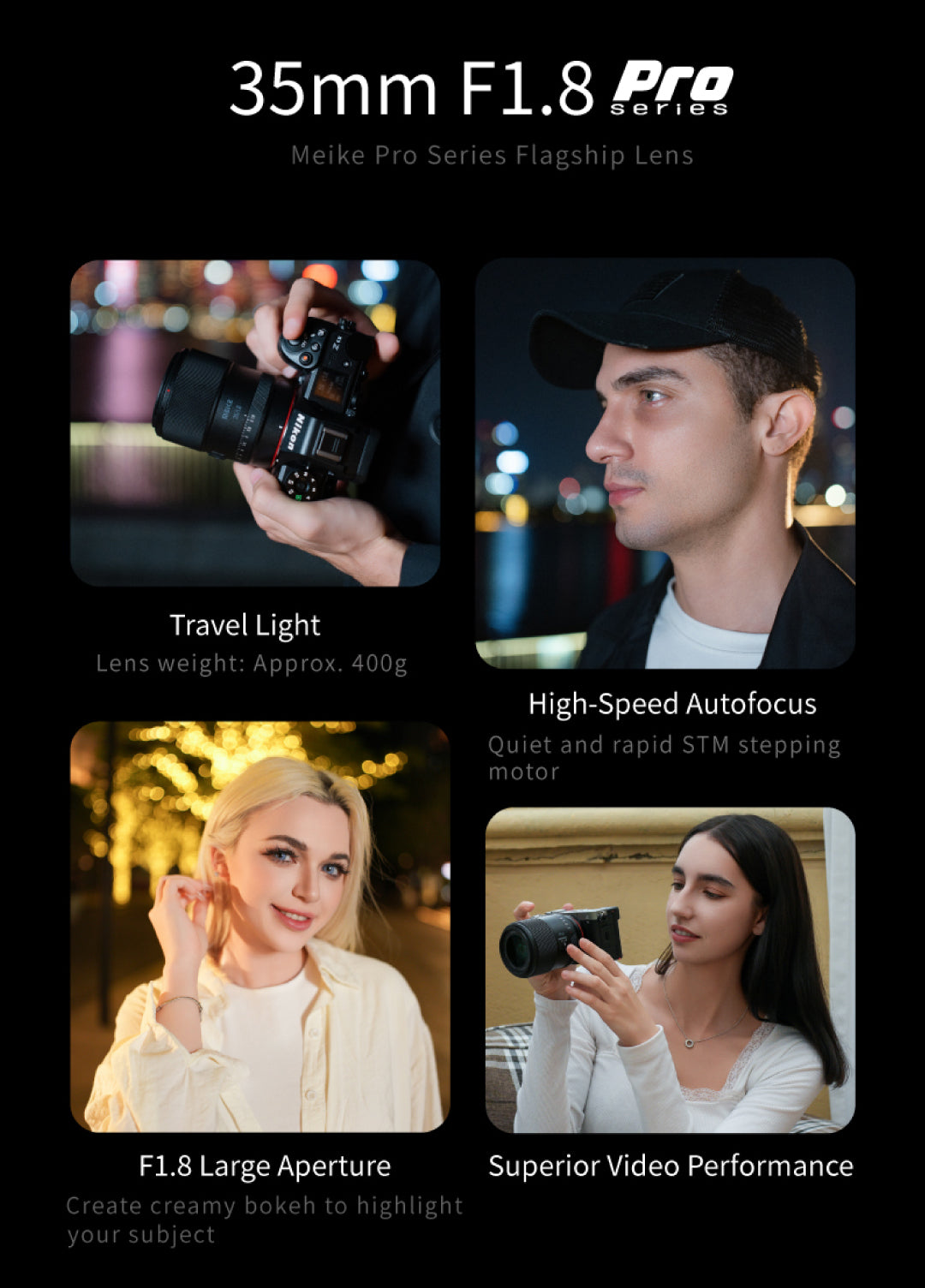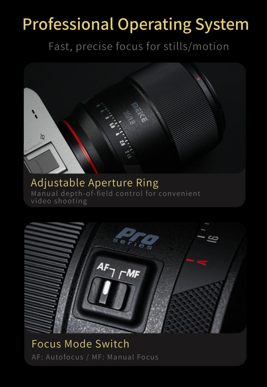 Meike 35mm f1.8 Pro Vollformat-Autofokus STM-Objektiv für L-Mount-Kameras. Mit dem Meike 35mm f/1.8 STM Autofokus-Objektiv, das speziell für Panasonic Vollformatkameras entwickelt wurde, gelingen Ihnen atemberaubende Aufnahmen . Dieses vielseitige Festbrennweitenobjektiv bietet eine lichtstarke Blende von f/1,8, die sich perfekt für ein schönes Bokeh und hervorragende Ergebnisse bei schlechten Lichtverhältnissen eignet.