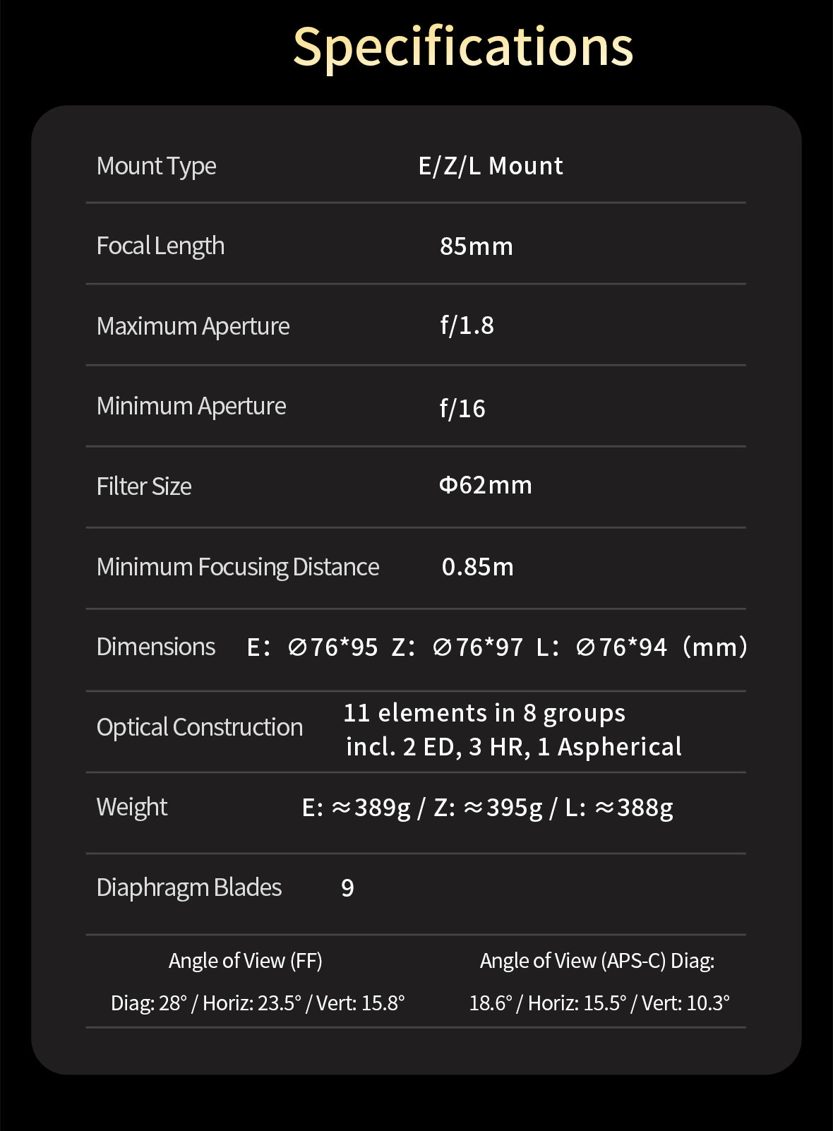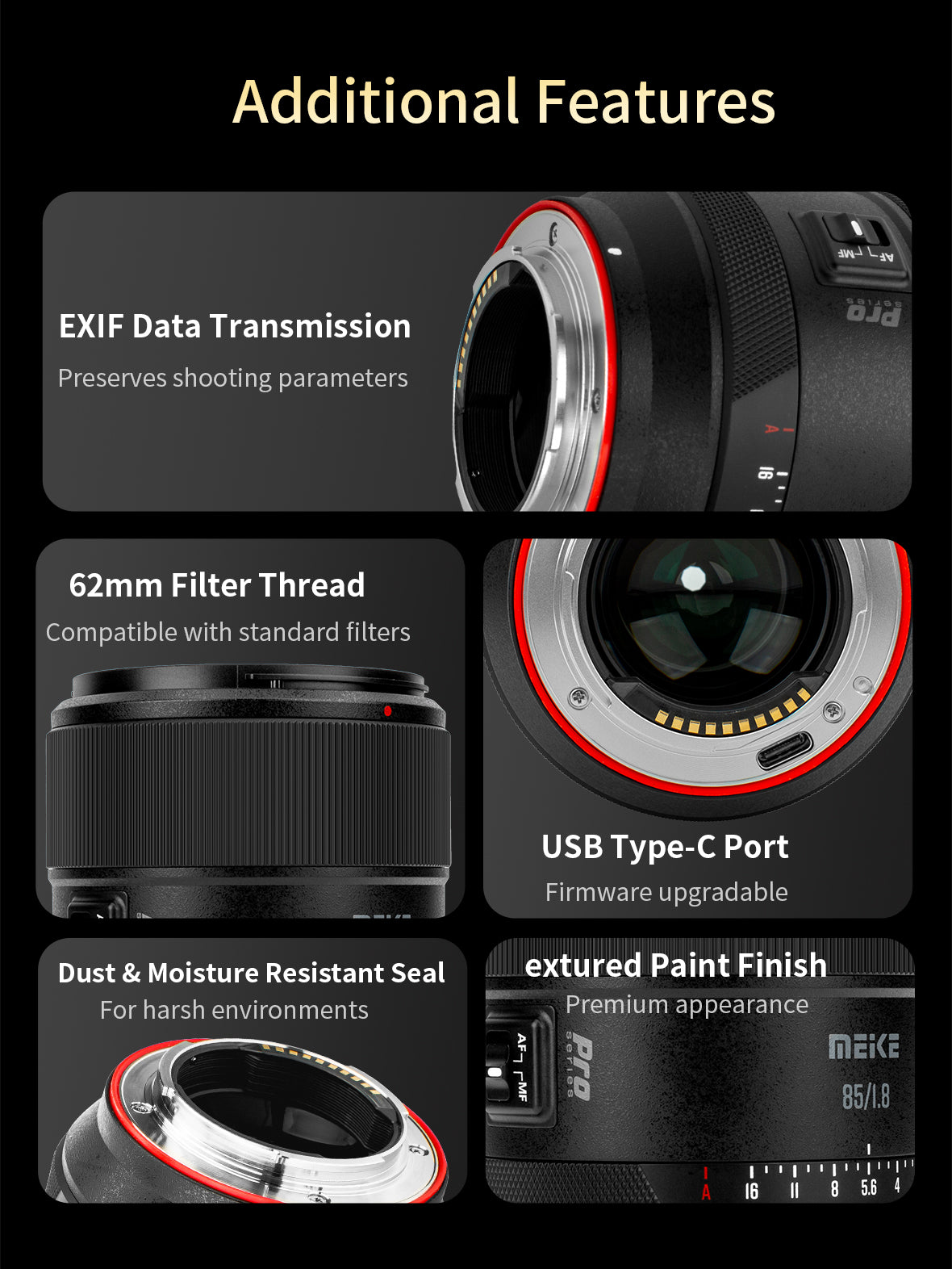Ausgestattet mit einem fortschrittlichen STM-Autofokussystem (Schrittmotor) bietet dieses Objektiv eine schnelle, präzise und nahezu geräuschlose Fokussierung und ist somit perfekt für Foto- und Videoaufnahmen geeignet.Die 85-mm-Brennweite ist als ideale Wahl für Porträts bekannt und bietet eine schmeichelhafte Komprimierung und hervorragende Motivisolierung. Es eignet sich auch hervorragend für Mode, Veranstaltungen und detaillierte Nahaufnahmen. Das kompakte und dennoch leistungsstarke Meike 85mm f/1.8 Pro ist ein Muss für Fujifilm X-Mount-Fotografen, die eine hervorragende Bildqualität und kreative Kontrolle suchen.