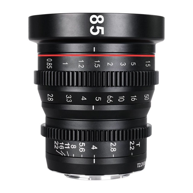 Vollmanuelles Filmobjektiv mit hoher Blendenzahl T2,2 und 85 mm Brennweite. Das Objektiv liefert scharfe Bilder mit minimalen Farbfehlern und gleichmäßiger Bildwiedergabe jenseits der Schärfentiefe, unterdrücktem "Atem"-Effekt und langem Fokusringweg (270°) mit M0,8-Verzahnung und Präzisionsmarken (Genauigkeit ca. 10"; Verzahnung auch am Blendenring). Variante für X-Mount-Bajonett.