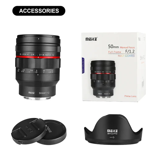 Das Meike Vollformat-Objektiv 50mm F1,2 für Sony E-Mount bietet eine außergewöhnliche Leistung bei schwachem Licht und ein atemberaubendes Bokeh, wodurch es ideal für Porträt- und Nahaufnahmen ist.