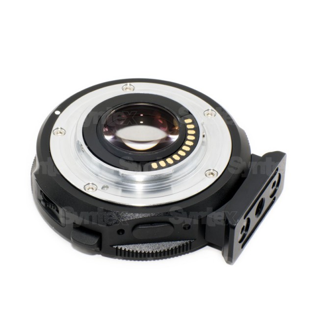 Adapter zur Montage von Canon EF-Objektiven an Kameras mit aktivem und passivem MFT-Bajonett. Der Adapter passt nicht nur das Bajonett an Canon EF-Objektive an, sondern verkürzt auch die Brennweite der Objektive und erhöht deren Lichtstärke. Die Blendenöffnung der montierten Objektive wird um eine Blendenzahl erhöht, und die Übertragungsfunktion der Objektive wird ebenfalls verbessert. Der Adapter ist mit einer Elektronik ausgestattet, die die Blende der Objektive über das Kameragehäuse steuert, von dem der Adapter auch mit Strom versorgt wird. Es ist ein ideales Zubehör für Blackmagic Cinema Camera MFT oder Panasonic GH4 und GH5Modelle.