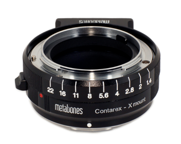 Mit dem Metabones Contarex-zu-FUJI-X-Mount-Adapter (mattschwarz) können Sie Contarex-Objektive präzise und zuverlässig an Kameras mit FUJI-X-Mount anbringen. Dieser Smart Adapter™ aus verchromtem Messing gewährleistet eine stabile, spielfreie Verbindung, unterstützt die elektronische Blendensteuerung und verfügt über einen abnehmbaren Stativfuß, der mit Kugelköpfen von Arca-Swiss, Markins und Photo Clam kompatibel ist.
