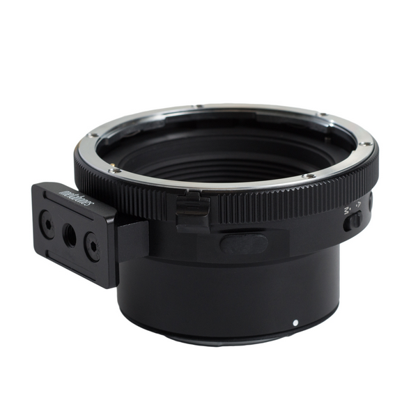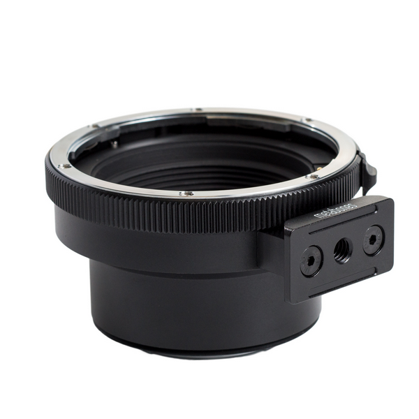 Der für den harten Einsatz konzipierte Adapter besteht aus einer widerstandsfähigen Aluminiumlegierung und Messing, ist verchromt und mit einer eleganten schwarzen Satinierung versehen. Der E-Mount-Anschluss ist mit einer Gummidichtung versehen, die für zusätzliche Staub- und Feuchtigkeitsbeständigkeit sorgt und eine zuverlässige Leistung in verschiedenen Umgebungen gewährleistet. Für eine einfache Montage ist ein abnehmbarer Arca-Type-Stativfuß enthalten, der mit mehreren Schnellkupplungssystemen kompatibel ist und somit eine vielseitige Verwendung von Stativen ermöglicht.