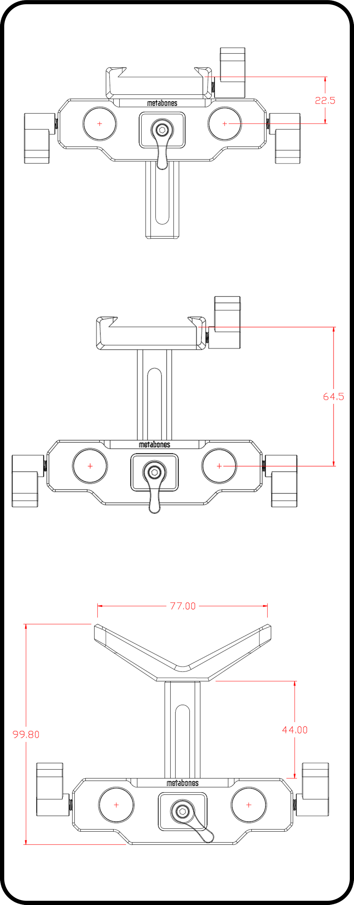 Sie können den Abstand "A" zwischen der Mitte des Metabones-Adapters und der Unterseite des Stativfußes in der Tabelle überprüfen ( hier herunterladen)