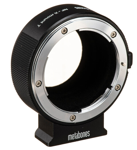 Mit dem Metabones Nikon F-zu-FUJIFILM X-Mount T-Adapter II (schwarz) können Fotografen Nikon-F-Objektive mit Blendenring an Kameras mit FUJIFILM X-Mount anschließen und dabei die Unendlich-Fokussierung beibehalten. Der aus Messing gefertigte und verchromte Adapter sorgt für eine stabile Verbindung mit minimierten internen Reflexionen und verfügt über einen abnehmbaren Stativfuß vom Typ Arca für einen sicheren Halt.