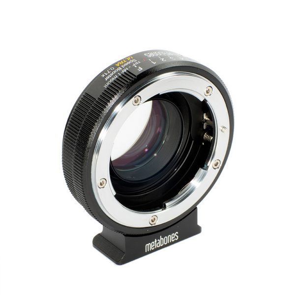 Passen Sie Nikon G- und F-Objektive, einschließlich AI- und Nicht-AI-Modelle, mit dem Metabones Nikon G to Micro Four Thirds Speed Booster ULTRA 0.71x an Ihre Micro Four Thirds-Kamera an. Dieser Adapter verwendet ein patentiertes optisches 5-Element-4-Gruppen-Design mit Glas auf Tantalbasis mit ultrahohem Index, das eine beeindruckende Bildqualität mit verbesserter Auflösung, Kontrast und einer um eine Blendenstufe erhöhten maximalen Blende liefert. Die 0,71-fache Vergrößerung des Speed Boosters sorgt für ein breiteres Sichtfeld, so dass in jedem Bild mehr erfasst wird und die Vielseitigkeit Ihrer Nikon-Objektive erhöht wird.