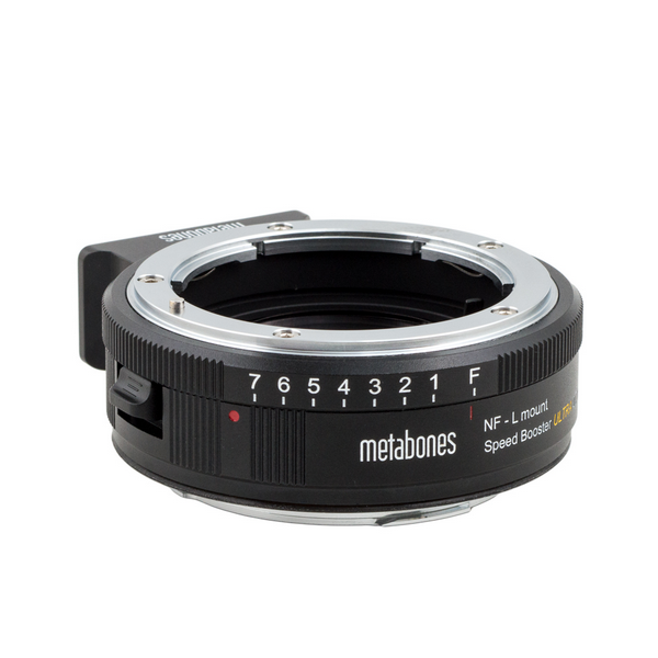 Der Metabones Nikon G to L-Mount Speed Booster ULTRA 0.71x ermöglicht den Anschluss von Nikon F-Mount-Objektiven, einschließlich G-, AI- und Nicht-AI-Typen, an Blackmagic Design L-Mount-Kameras und verbessert Blende und Sichtfeld.