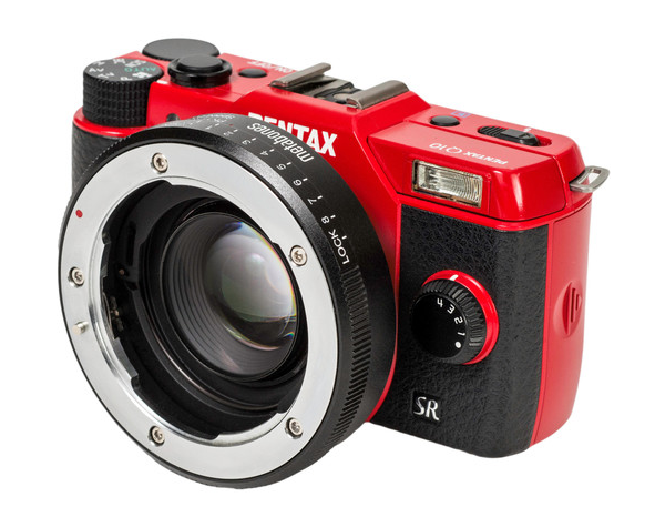 Der Metabones-Objektivadapter vom Leica-M-Anschluss auf Micro-Four-Thirds (rot) ermöglicht