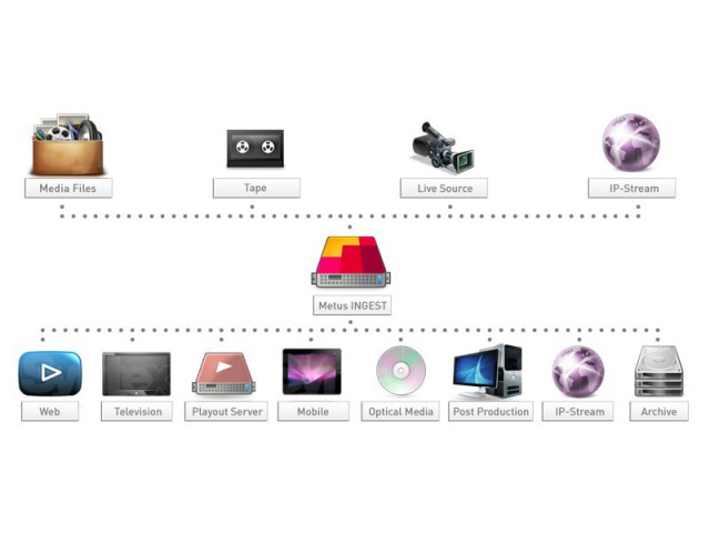Metus INGEST ersetzt nicht nur ein ganzes Regal mit Videorecordern, sondern bietet auch eine weitaus größere Vielseitigkeit an Codecs. Die Möglichkeit, Dateien direkt auf einem Netzwerkspeicher zu speichern, und die Integration in Media Asset Management-Systeme (MAM) bieten unglaubliche Workflow-Vorteile gegenüber bandbasierten Umgebungen.