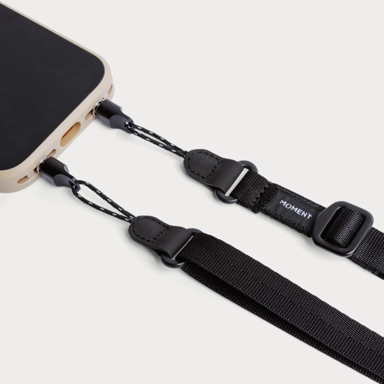 Der Riemen wird direkt an der Befestigungsstelle angebracht, die in jede Moment-Hülle für das iPhone 17 (außer der Air-Version) integriert ist, und stellt so eine direkte Verbindung zu Ihrem Telefon her – nicht nur zur Hülle. Keine Plastikkarabiner oder Schwachstellen, nur eine einfache Schnur, die fest durchgezogen wird und an Ort und Stelle bleibt, egal wie aktiv Sie sind.