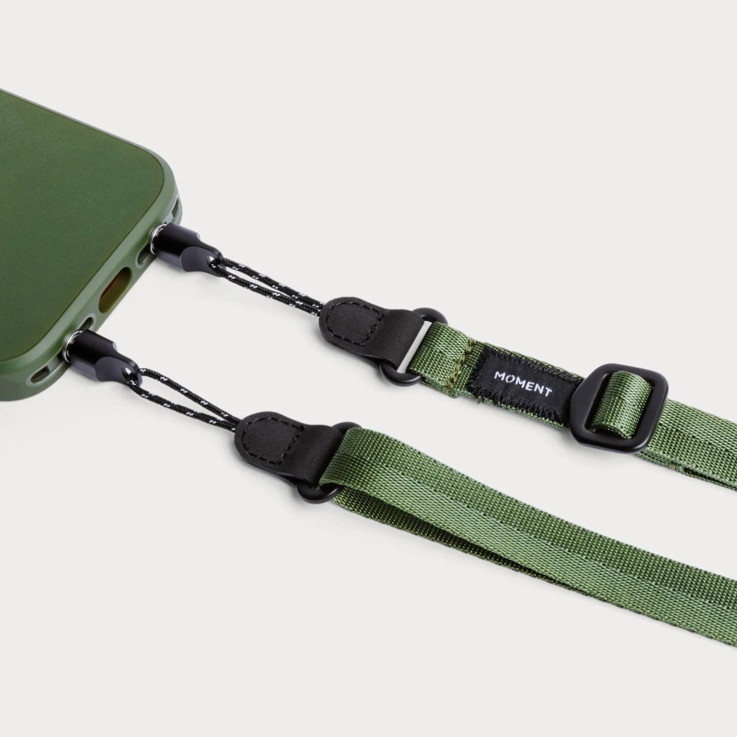 Die verstellbaren Handygurte von Moment halten Ihr Handy beim Fotografieren, Pendeln oder einfach nur beim Spaziergang durch die Stadt sicher und griffbereit. Sie bestehen aus einem Nylonband in Militärqualität und robusten Aluminiumkomponenten, wodurch sie leicht, stabil und bequem zu tragen sind. Farbe: Olivgrün.