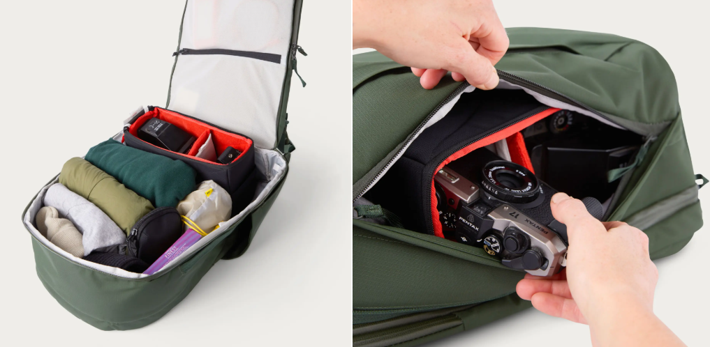 Für Fotografen ermöglicht das innovative Insert-Anchor-System die nahtlose Integration eines 8-Liter-Kamera-Cubes, wodurch sich der Rucksack in eine voll funktionsfähige Kameratasche verwandelt. Der Komfort steht im Vordergrund, dank S-förmiger Schultergurte, eines verstellbaren Brustgurts und einer konturierten Rückwand mit geformten Schaumstoff-Luftkanälen und atmungsaktivem Spacer-Mesh, um Hitzestau zu reduzieren.
