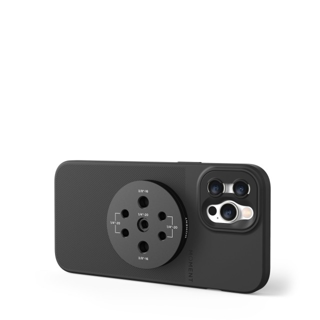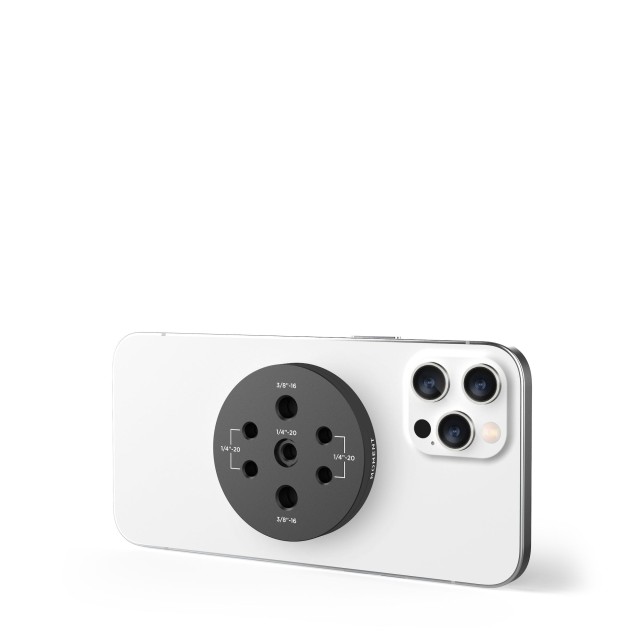 Wir präsentieren die Multi-Threaded Mount - for MagSafe®... auch bekannt als Käseplatte mit fünf Innengewinden auf einer Seite und extra starken Magneten auf der anderen... die Ihr iPhone mit MagSafe sicher an allem befestigt. Die von den Filmemachern von Moment entwickelte Halterung ist die erste, die mit MagSafe kompatibel ist und über 2 3/8"-Innengewinde und 3 1/4"-20-Innengewinde verfügt. Damit können Sie Ihr Handy mit jedem 1/4"-20 oder 3/8"-Zubehör überall befestigen. Magische Arme, Stative, Rig-Halterungen, Kugelköpfe, was auch immer... mit der Moment Multi-Threaded Mount können Sie Ihr Handy mit Magneten daran befestigen. Diese Halterung, die mit oder ohne Tasche verwendet werden kann, verfügt außerdem über ein proprietäres (M)Force-Magnetfeld, das noch stärker ist als Standardzubehör und Ihnen zusätzliche Sicherheit gibt, dass Ihr Handy nicht herunterfällt.