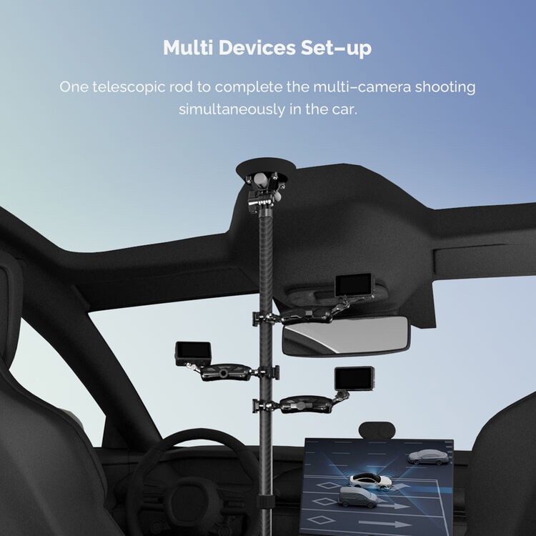 Nehmen Sie dynamische Innenaufnahmen Ihres Fahrzeugs mit der verstellbaren Teleskopstange MOVMAX auf, die eine Arbeitshöhe von 2,5 bis 4 Fuß, eine stabile Saugnapfhalterung und eine Karbonfaserkonstruktion bietet. Diese leichte und dennoch robuste Stange wurde für vielseitige POV-Aufnahmen in Ihrem Auto entwickelt und bietet stabilen Halt für Kameras und …