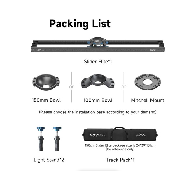 Der MOVMAX Slider Elite mit Mitchell-Halterung (47,2") ermöglicht präzise, geräuscharme lineare Kamerabewegungen auf robusten Aluminiumschienen und verfügt über einen reibungsbasierten Laufwagen mit integrierter Mitchell-Basis für die sichere Befestigung von mittleren bis großen Kamerarigs mit einem Gewicht von bis zu 55,1 lb. Die manuelle Bedienung wird durch einstellbare Brems- und Dämpferknöpfe für kontrollierte Geschwindigkeit und Stopp verbessert, während zwei 5/8"-Baby-Pin-Aufnahmen an Lichtständeradaptern eine stabile Höhe auf C-Stativen oder Stativen ermöglichen. Das komplette System lässt sich in einer mitgelieferten Tragetasche verstauen und eignet sich somit ideal für Studio- oder Außenproduktionen, die flüssige, wiederholbare Gleitschüsse erfordern.