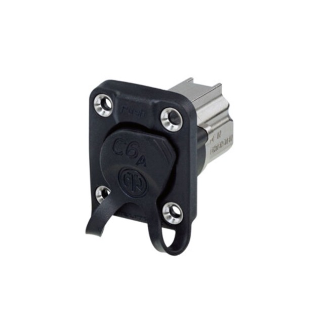 Neutrik NE8FDX-Y6-W D-Form CAT6A Einbaustecker, geschirmt, IDC Anschluss mit Gummidichtung, IP65 im gesteckten Zustand, vernickeltes Gehäuse