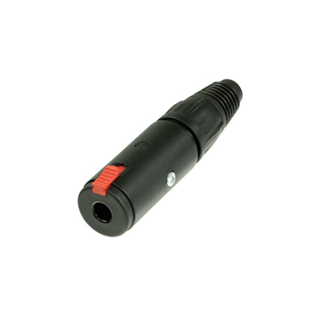 Professionelle verriegelbare 1/4" Kabelbuchse für sichere Inline-Verbindungen. Schwarzes Metallgehäuse, silberne Kontakte, ausgezeichneter Kabelschutz. Die 3-polige Klinkenbuchse in Inline-Ausführung bietet stabile und sichere Verbindungen, wo versehentliches Trennen oder Stöße und Vibrationen auftreten können. Sie verriegelt mit standardmäßigen A-Gauge-Mono- oder -Stereo-Steckern. Der Stecker rastet beim Einstecken automatisch ein und wird nur durch Drücken der roten Entriegelungslasche entriegelt.