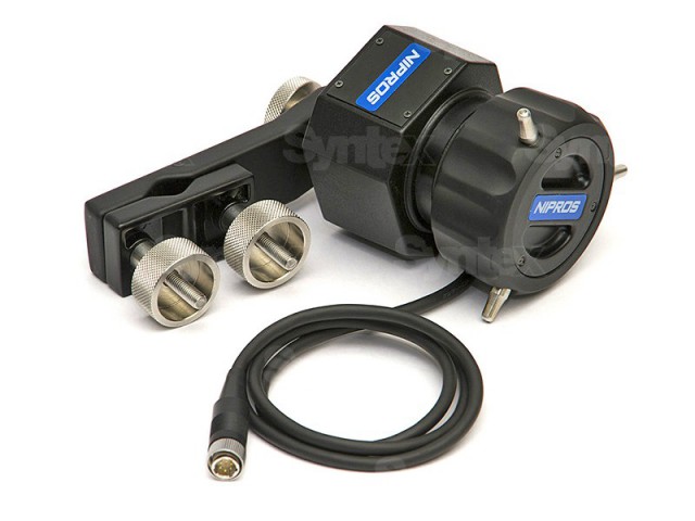 Der FR-S10 Fokus-Controller für die Sony CBK-DCB01 Steuerungsschnittstelle von Nipros dient zur Fernsteuerung des Fokus ausgewählter Servo-Objektive, die an Sony-Kameras wie der PMW-300K1/K2, 400K, EX-3, F3 und F5 montiert sind. Er wird über ein 6-poliges Kabel an die Sony CBK-DCB01-Steuerschnittstelle angeschlossen und verfügt über ein Fokus-Einstellrad und eine Klemmhalterung zur Befestigung am Schwenkgriff Ihres Stativs.