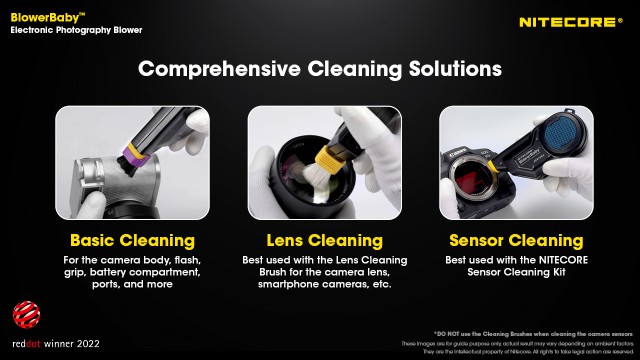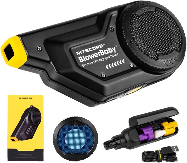 Das Nitecore BlowerBaby Kit enthält das Nitecore BlowerBaby, einen Nitecore CMOS-Filter, einen Nitecore Kamera-Reinigungsstift und eine Nitecore Aufbewahrungstasche für das BloweBaby.