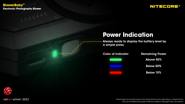 Das Nitecore BlowerBaby ist das erste wiederaufladbare Staubtuch, das speziell für Fotoausrüstung und mehr entwickelt wurde. Ausgestattet mit einem leistungsstarken Motor mit 26.000 Umdrehungen pro Minute kann er Luft mit einer Geschwindigkeit von 70 km/h ausstoßen, um die klebrigen und klebrigen Verschmutzungen von Ihrer feinen Elektronik, wie z.B. einer Tastatur, Computerkomponenten, Lautsprechern usw. zu entfernen. Der Filter kann leicht entfernt und gereinigt werden, um den Luftstrom zu verbessern und für die routinemäßige Wartung sowie durch einen speziellen antistatischen Sensorfilter mit einem feineren Netz zum Schutz des empfindlichen Kamerasensors ersetzt werden. Das BlowerBaby verfügt über einen eingebauten 1500mAh-Akku, der das Gebläse für mehr als 15 Minuten Dauerbetrieb oder 90 Anwendungen mit 10-Sekunden-Stößen mit Strom versorgen kann. Die dreifarbige Akkustandsanzeige zeigt an, wann es Zeit ist, den Akku aufzuladen. Schließen Sie das USB-C-Kabel an, um ihn in 1,5 Stunden voll aufzuladen.