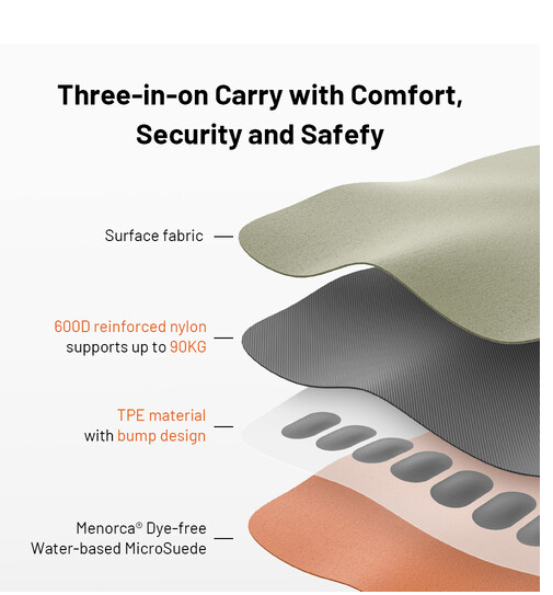 Der Gurt verfügt über Schnellverschlüsse zum schnellen Anbringen oder Abnehmen der Kamera und ein TPE-Futter mit Noppen sorgt für Komfort bei längeren Aufnahmen. Mit einem Gewicht von nur 70 g ist er ideal für Fotografen, die Mobilität ohne Kompromisse bei der Sicherheit benötigen. Der Gurt sollte ersetzt werden, wenn die gelbe Schicht im Band sichtbar wird, um die Sicherheit und Zuverlässigkeit zu gewährleisten.