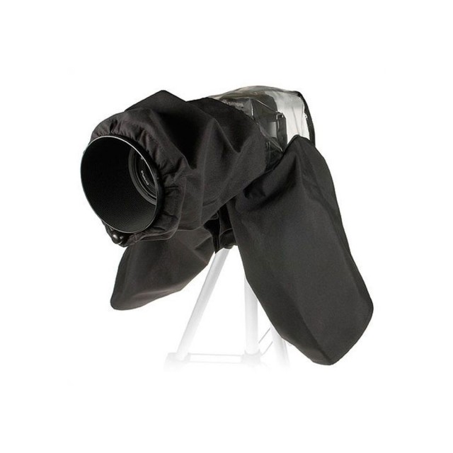 Ein Umhang, der für eine Vielzahl von digitalen Spiegelreflexkameras mit Teleobjektiv geeignet ist.