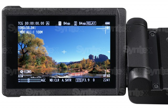 Das Kameragehäuse ist außerdem mit einem hochauflösenden, hellen LCD-Display, einem hochwertigen OLED-Sucher, parallelen SDI/HDMI-Ausgängen und fortschrittlicher Elektronik für geringen Stromverbrauch, kompakte Größe und ein Gewicht von nur 1,9 kg ausgestattet