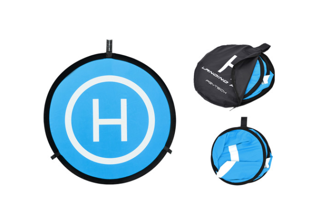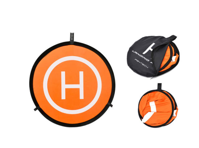 Das Landeplatz-Pad wurde für den mobilen Einsatz entwickelt und springt beim Öffnen automatisch in Form. Es lässt sich kompakt zusammenfalten und passt in die mitgelieferte Nylontasche mit Reißverschluss, sodass es leicht transportiert werden kann. Für zusätzliche Stabilität enthält das Kit drei Bodenstifte, mit denen das Pad befestigt werden kann, damit es nicht vom Wind weggeweht wird. Dieses leichte und dennoch strapazierfähige Landeplatz-Pad ist ideal für den Einsatz im Freien und sorgt dafür, dass der Gimbal und die Kamera Ihrer Drohne bei jedem Flug geschützt bleiben.