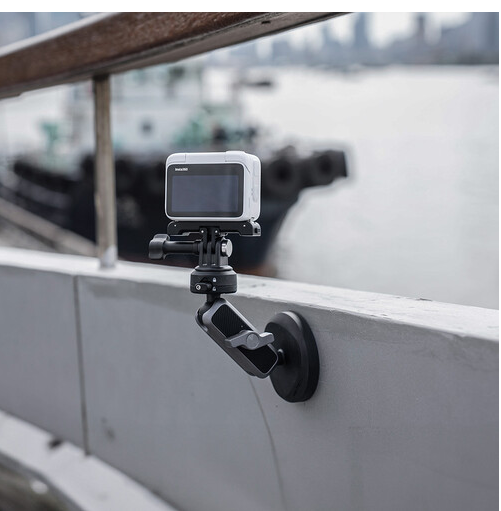 Die Halterung verfügt über einen doppelten Kugelkopf-Gelenkarm, der sich um 360° drehen lässt und Ihnen die volle Kontrolle über die Kamerawinkel gibt. Das CapLock-Schnellverschlusssystem sorgt für ein einfaches Anbringen und Abnehmen Ihrer Kamera und Ihres Zubehörs, während das klappbare, kompakte Design die Halterung äußerst tragbar macht. Diese Halterung ist sowohl mit 3-poligen als auch mit 1/4"-20-Adaptern kompatibel und eignet sich ideal für Action-Kameras, kleine Kameras und andere Geräte, die innerhalb der Gewichtsgrenze liegen.
