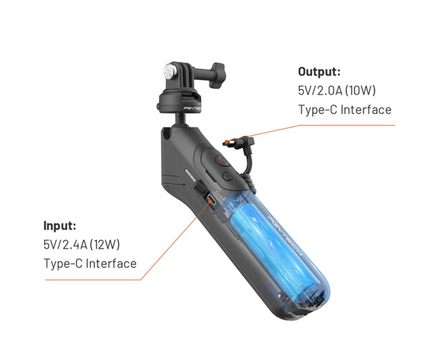 Der PGYTECH P-GM-149 CapLock MantisPod Power Grip (GoPro Edition) wurde für Actionkamera-Enthusiasten und Smartphone-Nutzer entwickelt, die Flexibilität, Leistung und Benutzerfreundlichkeit in einem kompakten Gerät suchen. Dieser Griff ist kompatibel mit GoPro HERO5 bis HERO13 und USB-C-Smartphones (Android, Harmony OS, iOS) und ermöglicht dank seines integrierten 21700-Lithium-Akkus (5000 mAh) sorgenfreies Filmen bei gleichzeitigem Laden. Der Akku unterstützt eine schnelle 12-W-Eingangsleistung und 10-W-Ausgangsleistung, bietet eine Nutzungsdauer von ca. 25 Stunden und ist in etwa einer Stunde vollständig aufgeladen.
