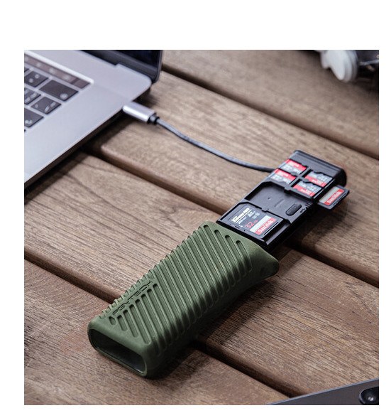 Mit dem PGYTECH P-GM-162 CreateMate High-Speed-Kartenlesegerät-Etui in Moosgrün können Sie Speicherkarten effizient aufbewahren, transportieren und übertragen. Mit UHS-II SDXC- und microSDXC-Kartensteckplätzen, Schutzklasse IP54 und einem integrierten USB-C 3.2 Gen 1-Kabel unterstützt dieses Etui Plug-and-Play-Konnektivität mit Windows, Mac, Linux und Android für schnelle und zuverlässige Datenübertragungen unterwegs.