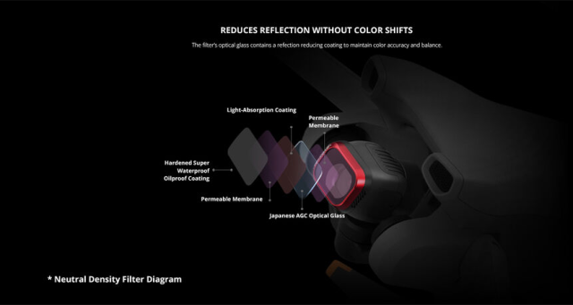 Zusätzlich zur optischen Korrektur fungiert der UV-Filter als physische Barriere und schützt das Objektiv und den Sensor vor Staub, Feuchtigkeit, Öl und Kratzern. Die wasserdichte, ölbeständige und kratzfeste Beschichtung gewährleistet Langlebigkeit unter schwierigen Außenbedingungen. Der präzise CNC-gefräste Aluminiumrahmen ist leicht, korrosionsbeständig und sorgfältig konstruiert, sodass er die Balance des Gimbals oder die Flugleistung nicht beeinträchtigt.